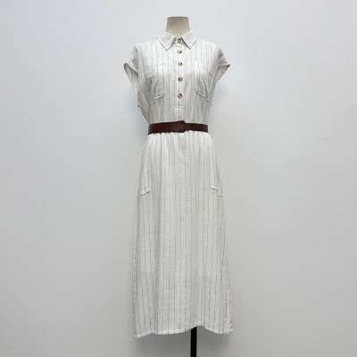 Striped Lapel Waist Sleeveless Shirt Dress Elegant Commuter Midi Dress