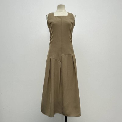 Khaki Square Neck Sleeveless Midi Dress