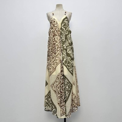 Vintage Ethnic Print Spaghetti Strap Maxi Dress Loose Vacation Style Lace Trim Dress