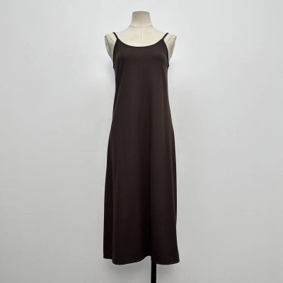 Simple Brown Spaghetti Strap Midi Dress