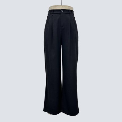 Black High-waisted Wide-leg Suit Pants Loose-fit Slimming Casual Trousers