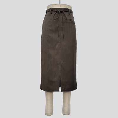 Vintage Brown Tie-waist Split Midi Skirt Minimalist Commuter Suit Skirt