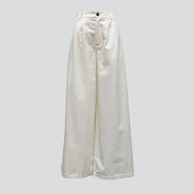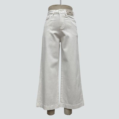 White High-Waisted Wide-Leg Jeans Loose Slim Rolled-Cuff Denim Trousers