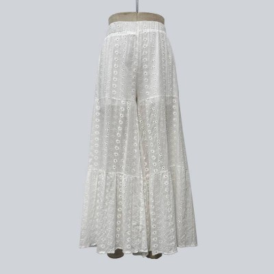White Hollow Embroidered Wide-Leg Pants High Waist Loose Slim Casual Long Pants
