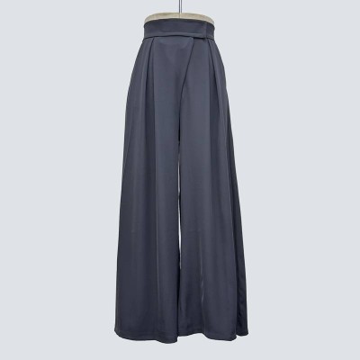 Grey-Green Tie-Waist Skirt Style Fake Two-Piece Casual Pants Straight Leg Designer Trousers