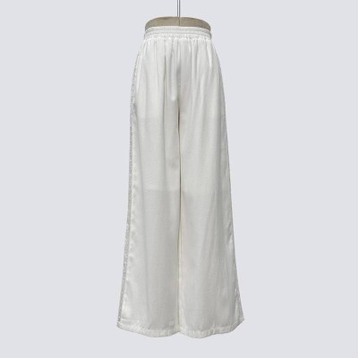 Simple White Elastic Waist Wide-leg Casual Pants