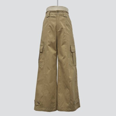 Vintage Khaki Wide-leg Cargo Pants Loose Casual Trousers with Multiple Pockets