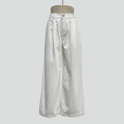 Simple White High-waisted Wide-leg Pants Loose Casual Long Pants