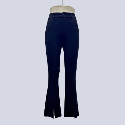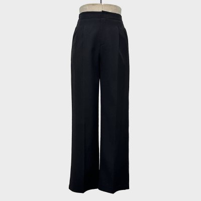 Simple Black High Waist Cuffed Casual Pants Straight-leg Suit Trousers