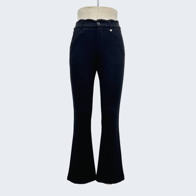 Elegant Black Flared Casual Pants with Pearl Lace Belt Decor Slim Long Pants