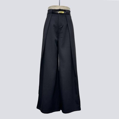 Simple Black Drape Wide-Leg Pants Fashion High Waist Slim Casual Long Pants