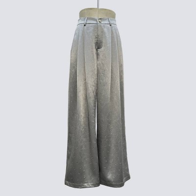 Simple Drape Satin Wide-leg Pants Loose Casual High-waisted Trousers