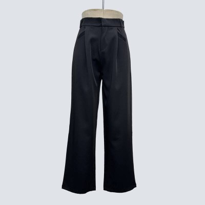 Black Drapey Wide-Leg Casual Suit Pants Versatile Commuter Trousers
