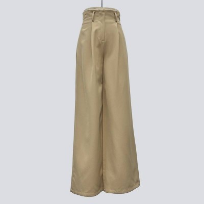 High Waist Wide-Leg Suit Pants Khaki Casual Office Trousers