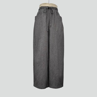 Simple Drawstring High-Waist Dark Gray Wide-Leg Pants Loose Casual Drape Long Pants