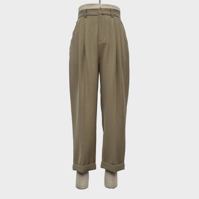 High Waist Pleated Cuffed Casual Pants