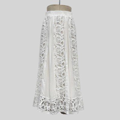 Vintage Hollow Lace White Midi Skirt