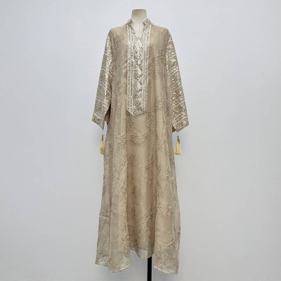Sequin Embroidered V-neck Long Formal Dress Luxury Tassel Decor Loose Banquet Maxi Dress