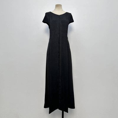 Simple Black Short-sleeve Long Dress Elegant Solid Color Commute Banquet Evening Dress