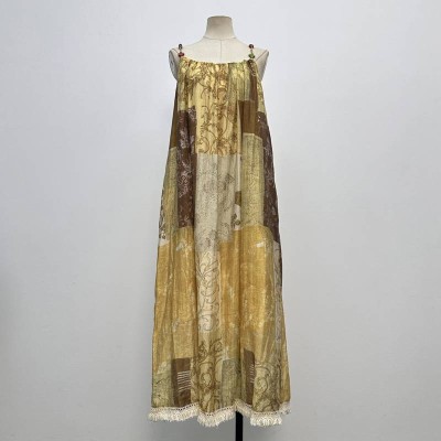 Vintage Print Camisole Tassel Maxi Dress Loose Vacation Style Dress