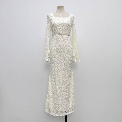 Elegant Square Neck Lace Long Sleeve Mermaid Maxi Dress Slim Fit Temperament Long Dress