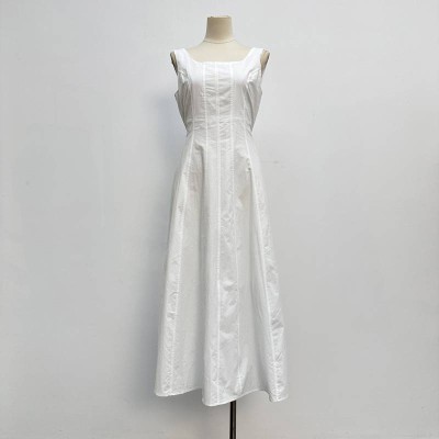 Elegant Square Neck Sleeveless White Maxi Dress Simple Waist Slimming Long Dress