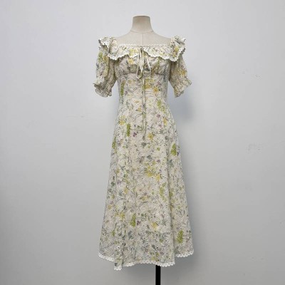 Gentle Style Off-the-shoulder Floral Midi Dress Waist-tie Elegant Dress