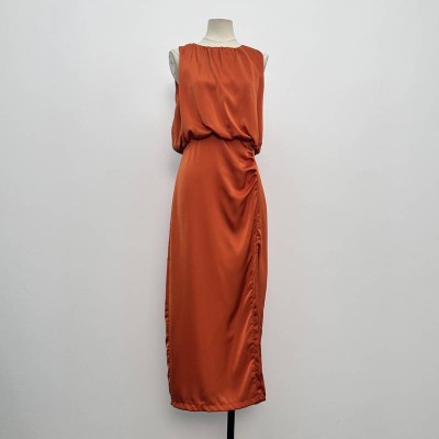Satin Sleeveless Waist Pleated Elegant Midi Dress