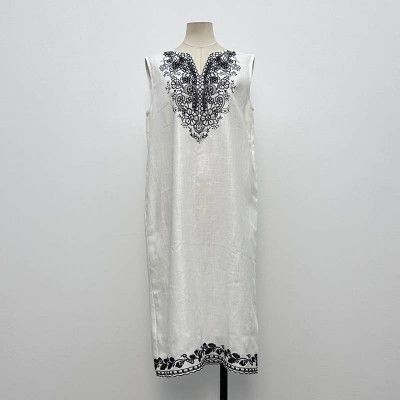 Vintage Embroidered V-neck Sleeveless Midi Dress