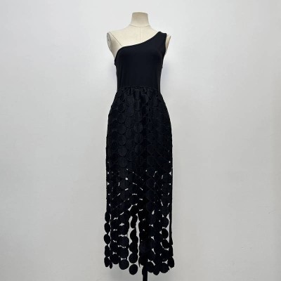 Black One-shoulder Hollow-out Midi Dress Elegant Slim Fit Dress