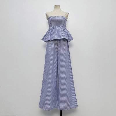 Blue & White Striped Camisole Top with Wide-Leg Pants Two-Piece Set, Chic Commuter Outfit