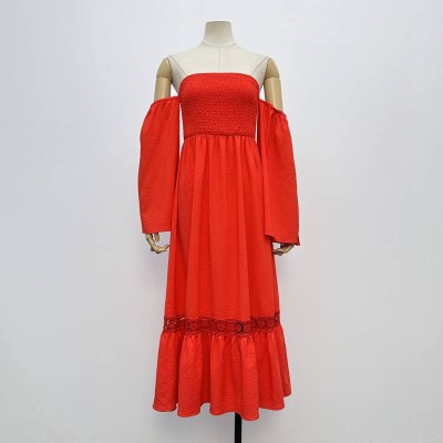 Red Off-the-shoulder Tube Top Waist-cinched Midi Dress