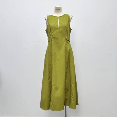 Avocado Green Elegant Sleeveless Midi Dress Simple Commuter Waist Slimming Dress