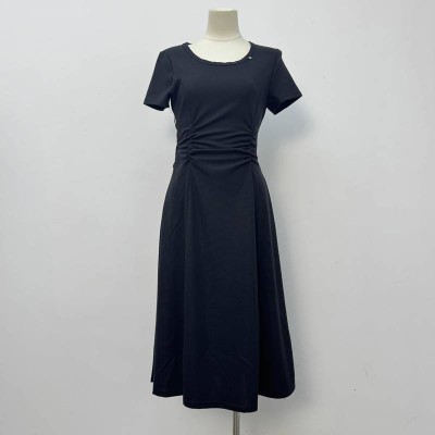 Black Short-sleeved Waist-cinching Slim Fit Midi Dress