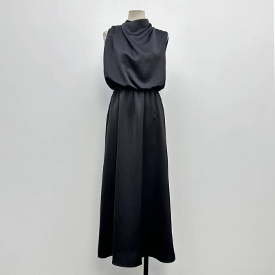 Elegant Stand Collar Sleeveless Waist-cinched Mid-length Satin Dress