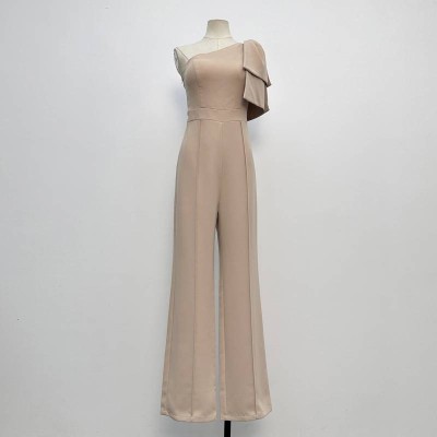 Elegant One-Shoulder Bow Decor Satin Wide-Leg Jumpsuit