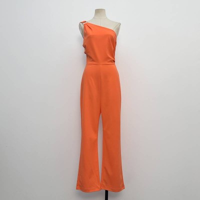 Elegant One-shoulder Sleeveless Orange Wide-leg Jumpsuit