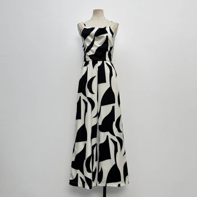 Black and White Print Spaghetti Strap Wide-leg Jumpsuit