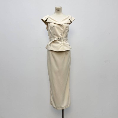 Elegant Off-the-shoulder Waist-cinched Top & Midi Skirt Set, Temperament Commuter Two-piece