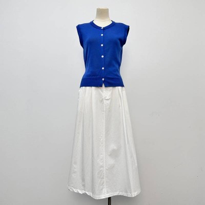 Blue Sleeveless Knitted Button-Up Top + White Long Skirt Set