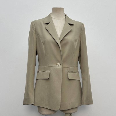 Elegant Waist-tailored Blazer, High-end Olive Green Commuter Suit Jacket