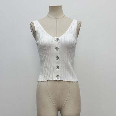 White Ribbed Knit Camisole Button-front Sleeveless Crop Top
