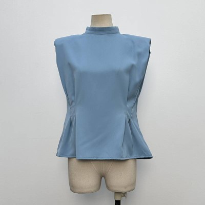Elegant Stand Collar Sleeveless Waist-fitted Top Solid Color Slim-fit Commute Top