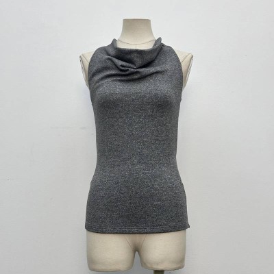 Fashion Stand Collar Pleated Cutout Sleeveless Top Slim Fit Black Bottoming Vest