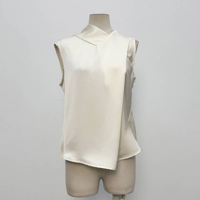 Elegant Halter Sleeveless Satin Top Solid Color Commute Inner & Outer Wear