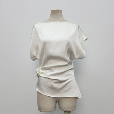 Elegant Satin Waist-cinched Sleeveless Top Niche Design Boat Neck Chic Blouse