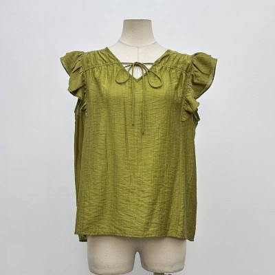 Lace-up Ruffle Sleeveless Chiffon Blouse