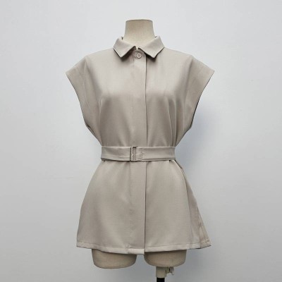 Minimalist Lapel Waist-cinched Sleeveless Shirt-style Top