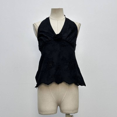 Vintage Black Halter V-neck 3D Floral Embroidery Sleeveless Camisole