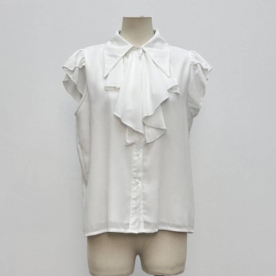 French Style Ruffled Sleeveless Chiffon Shirt Temperamental Lapel White Top
